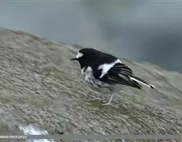 黑喉石鵖,雀形目鹟科石鵖属小型鸣禽,俗名谷尾鸟、黑喉石。其体色为黑褐色。雄鸟头部、背部、两翼及尾黑色,…