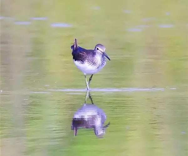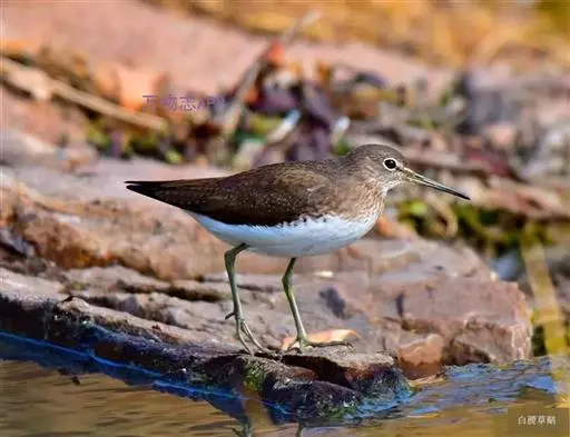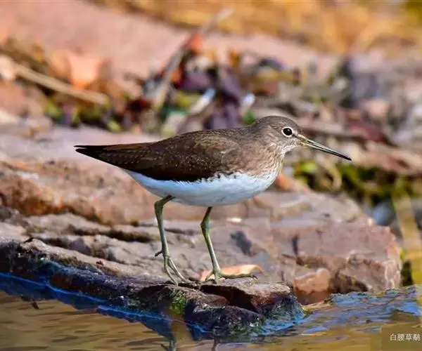 雌鸟和雄鸟相似,但背部不呈暗栗红色而为暗橄榄绿色,下体羽色略较雄鸟为浅,尾下的覆羽为暗绿色,并杂以白色的斑块。