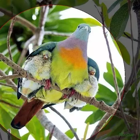 厚嘴绿鸠(学名:Treron curvirostra):是鸟纲、鸠鸽科的一种体型较小的鸟类,体长为25-28厘米,体重170-190克。它的体型与家鸽差不多,嘴短而厚,呈淡黄绿色或铅白色,嘴基的两侧呈珊瑚红色,脚也是珊瑚红色,爪为角褐色。