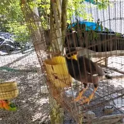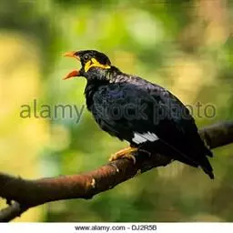 金冠树八哥为椋鸟科树八哥属的鸟类。体长约23厘米,闪辉黑色。特征为具翼斑及颏黄色,脸颊裸露皮肤粉黄色。…