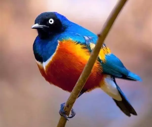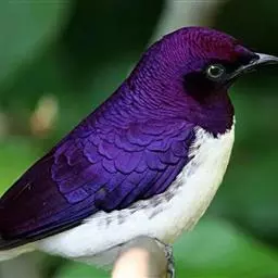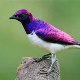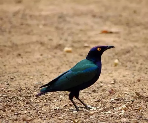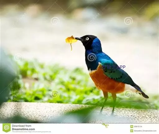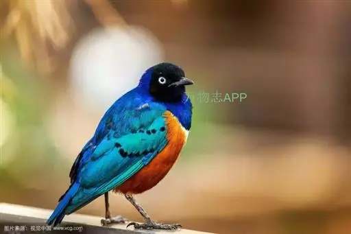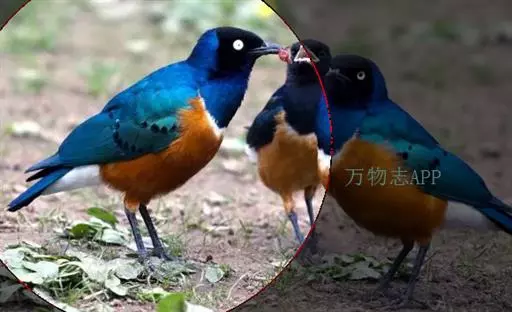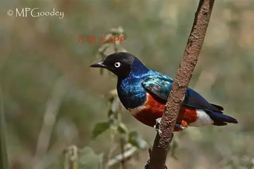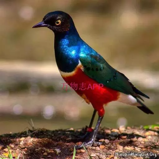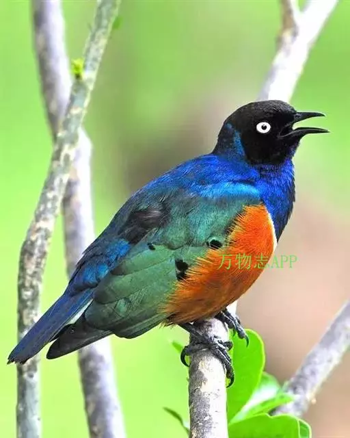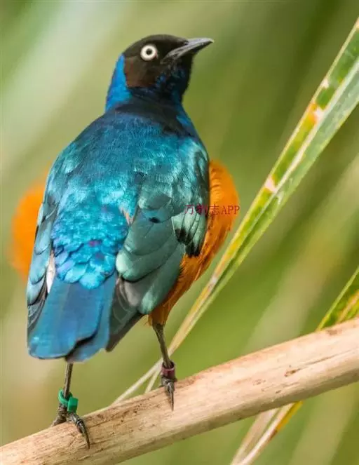 楔尾丽椋鸟 楔尾丽椋鸟21~25厘米,雄性体重68~73克,雌性体重65~68克,属中型鸟类。成鸟顶帽、后枕、颈、翕、背部和尾覆羽形成虹彩绿色;耳羽蓝绿色;而下体的大部分(颏,喉,胸,尾下覆羽)呈明亮的绿色;腹部和侧面有淡蓝色光泽;翅膀亮绿色,和紫色的肩部及翼侧的青铜色调形成对比。覆羽有深蓝色斑点;尾羽有一些交叉形图案的亮绿色。虹膜红色,腿和嘴黑色。两性类似,但有橙色而非红色的光圈。