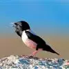 粉红椋鸟:中等体型,成鸟体长19-22厘米,体重60-73克,飞羽、尾羽为亮黑色,雌鸟与雄鸟毛色相似,…