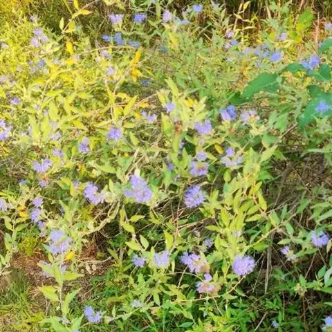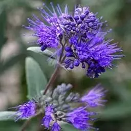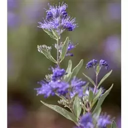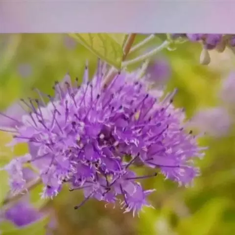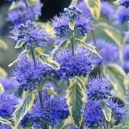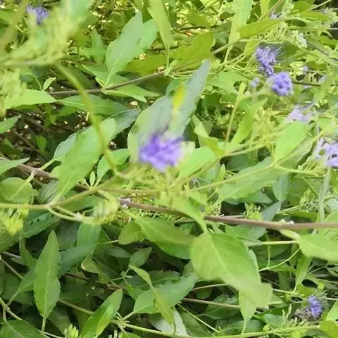 金叶莸是园林培植品种。落叶灌木类,株高50-60厘米,枝条圆柱形。单叶对生,叶长卵形,长3-6厘米,叶端尖,基部圆形,边缘有粗齿。叶面光滑,鹅黄色,叶背具银色毛。聚伞花序紧密,腋生于枝条上部,自下而上开放;花萼钟状,二唇形裂,下萼片大而有细条状裂,雄蕊;花冠、雄蕊、雌蕊均为淡蓝色,花紫色,聚伞花序,腋生,蓝紫色,花期在夏末秋初的少花季节(7-9月),可持续2-3个月。