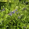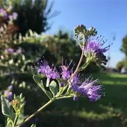 金叶莸耐土壤瘠薄,萌蘖力强。枝紫红色,圆形,叶披针形,叶缘锯齿。有一定耐寒性,喜光,可作为观叶、观花植物。它色感效果好,春夏一片金黄,秋天蓝花一片。在园林绿化中适宜片植,做色带、色篱、地被也可修剪成球。观赏价值高。