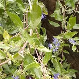 原种(莸):多年生草本,高约80厘米;茎方形,疏被柔毛或无毛。叶片膜质,卵圆形,卵状披针形至长圆形,长2-14厘米,宽1.2-5厘米,顶端渐尖至尾尖,基部近圆形或楔形,下延成翼,边缘具粗齿,两面疏生柔毛或背面的毛较密,侧脉3-5对;叶柄长0.5-2厘米。