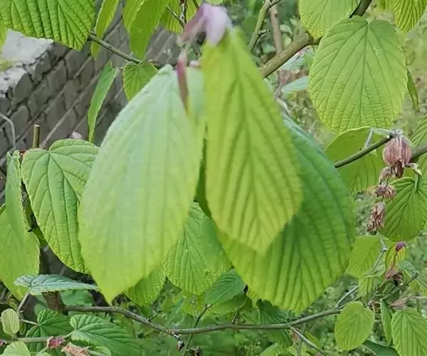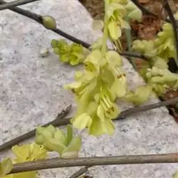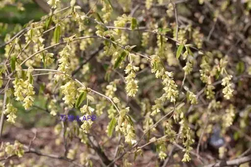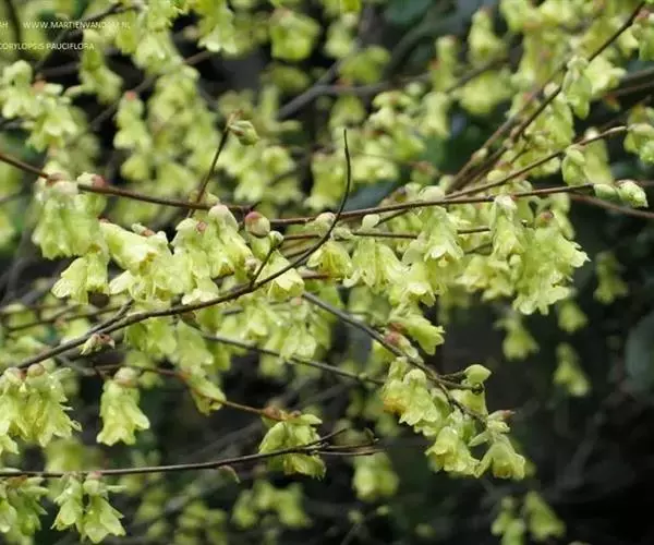 蜡瓣花 小蜡瓣花(Corylopsis sinensis Hemsl. var.parvifolia Chang)嫩枝有毛。叶倒卵形,长3-5.5厘米,宽2-4厘米,先端略尖,基部不等侧心形,下面有黄褐色星状柔毛,侧脉7-9对,在上面下陷,边缘有锯齿;叶柄长5-8毫米,有星毛。果序长4厘米,被绒毛,有蒴果10-14个,果序柄长1厘米。蒴果长7-8毫米,被星毛,宿存花柱长5-6毫米。分布于中国安徽,见于金寨地区。叶和果实的形态很接近于蜡瓣花,特别是宿存萼筒长为蒴果的4/5,只是叶片极为细小。