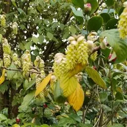 蜡瓣花(学名:Corylopsis sinensis Hemsl.)是金缕梅科,蜡瓣花属落叶灌木;嫩枝有柔毛,老枝秃净,有皮孔;叶薄革质,叶片倒卵圆形或倒卵形,有时为长倒卵形,先端急短尖或略钝,边缘有锯齿,齿尖刺毛状;叶柄有星毛;托叶窄矩形,总状花序;花序柄被毛,花序轴有长绒毛;总苞状鳞片卵圆形,苞片卵形,小苞片矩圆形,萼筒有星状绒毛,萼齿卵形,花瓣匙形,雄蕊比花瓣略短,子房有星毛,蒴果近圆球形,种子黑色。