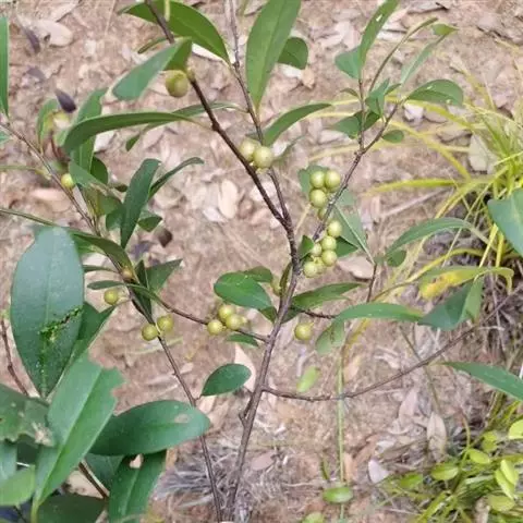 攀援灌木或藤本,稀小灌木,长1—3米;幼枝无毛,老枝具皮孔。叶坚纸质,倒卵形或长圆状倒卵形,长 酸藤子 3—4厘米,宽1—1.5厘米,稀长达7厘米,宽达2.5厘米,顶端圆形,钝或微凹,基部楔形,全缘,两面无毛,无腺点,背面常被薄白粉,侧脉不明显;柄长5—8毫米。总状花序着生于次年无叶枝上,侧生或腋生,长3—8毫米,被细微柔毛,有花3—8朵,基部具1—2轮苞片,花梗长约1.5毫米,被疏微柔毛;小苞片钻形或长圆形,具缘毛,通常无腺点;花4数,长约2毫米;花萼基部连合达1/2或1/3,萼片卵形或三角形,急尖,无毛,通常具腺点;花瓣白色或带黄色,分离,开花时强烈展开,卵形或长圆形,顶端圆形或钝,具缘毛,外面无毛,里面密生乳头状突起,具腺点;雄蕊在雌花中退化,长达花瓣的2/3,在雄花中超出花瓣很多,基部与花瓣连合;花丝挺直;花药卵形或肾形,背部具腺点,雌蕊在雄花中退化或几无,在雌花中较花瓣略长,子房瓶状,无毛;花柱细长,柱头扁平或几呈盾状。果球形,直径约5毫米,光滑,腺点不明显。花期12月至翌年3月,果期4—6月.
