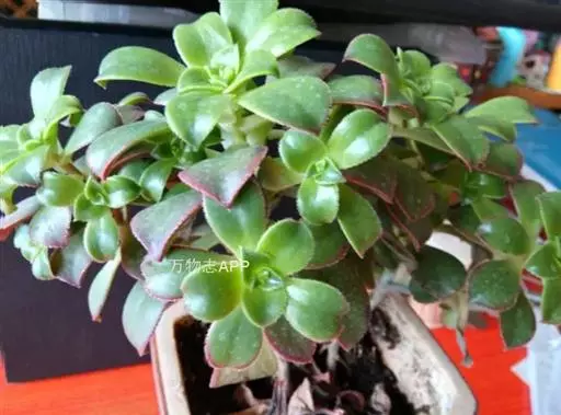 红缘莲花掌属蔷薇目、景天科植物,原产大西洋的加那利群岛。质厚,蓝绿色,被白霜,叶缘红褐色。聚伞花序,…