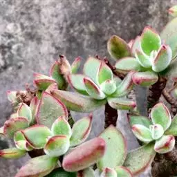 清盛锦 植株稍具分枝,叶肉质,呈莲座状排列。叶片倒卵圆形,顶端尖,正面中央稍凹,并具细绒毛,背面有龙骨状凸起,叶缘有睫毛状细锯齿,叶片色彩丰富,中央部分为杏黄色,与淡绿色间杂,外缘则呈红、红褐及粉红等色。