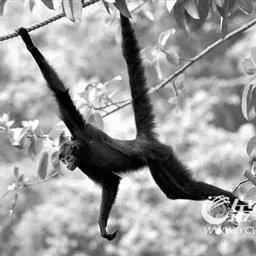 蛛猴属:共有7种。头体长约35-66厘米。头又圆又小,四肢细长,手没有拇指。…