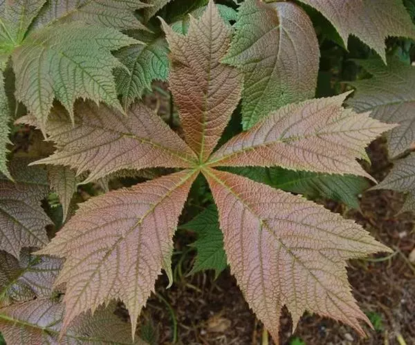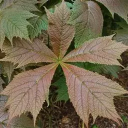 鬼灯檠(也称作:牛角七或老蛇莲)一种喜湿润多年生植物带有大而漂亮的叶,在春天具有一种金属般的光泽,在夏天退至绿色,当天气变得更凉爽时叶子又呈现金属般的光泽,能产生一个遮阴“密林”效应。