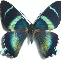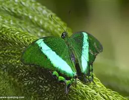 巴黎翠凤蝶中型凤蝶,躯体黑褐色,散布绿色亮鳞。后翅M3脉端有一明显叶状尾突。翅背面底色黑褐色,密布…