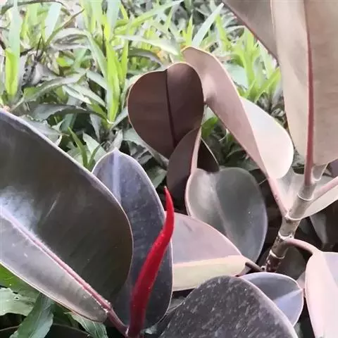 印度榕,别名橡皮树,桑科榕属多年生常绿乔木植物。株高30米;树皮灰白色,平滑;叶厚革质,…