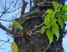 薜荔(学名:Ficus pumila Linn.)又名凉粉子,木莲等。攀援或匍匐灌木,叶两型,不结果枝节上生不定根,叶卵状心形。产福建、江西、浙江、安徽、江苏、台湾等地。瘦果水洗可作凉粉,藤叶药用。