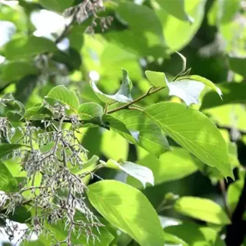 乔木,高达24米,胸径达45厘米;树皮光滑,灰色;小枝紫褐色,后渐变为灰褐色;冬芽长圆锥形,有鳞片包裹,鳞片3-4片,褐色,有光泽。