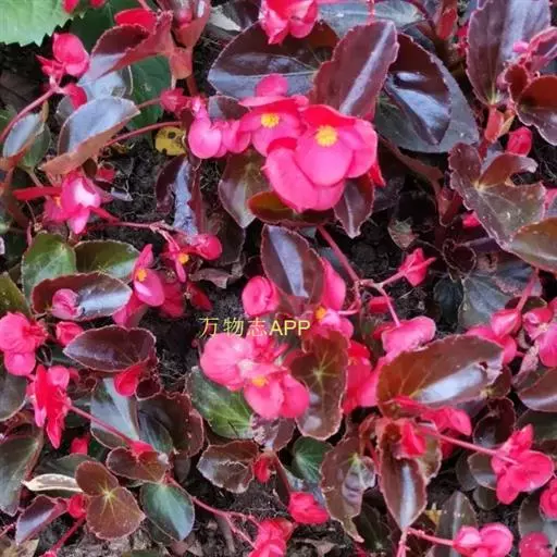多年生常绿草本,茎直立,稍肉质,高15-30厘米。单叶互生,有光泽,卵圆至广卯圆形,长5-8厘米,宽3-6厘米,先端急尖或钝,基部稍心形而斜生,边缘有小齿和缘毛,绿色。聚伞花序腋生,具数花,花红色,淡红色或白色。蒴果具翅。花期3-12月。 四季秋海棠