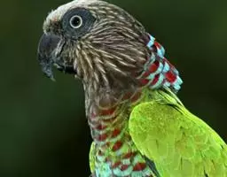 红额金刚鹦鹉(学名:Ara rubrogenys):是鸟纲、鹦鹉科的攀禽。体格壮硕强健,体长55-60厘米,平均翼展为81.28厘米,它们是最轻的金刚鹦鹉,体重在425-550克之间。两性羽毛颜色相似。鸟体大致上为橄榄绿色。前额、耳羽以及大腿附近都有红色的羽毛,翅膀也有零星的分布红色羽毛。眼睛周围皮肤苍白,鸟喙为黑色。红额金刚鹦鹉幼鸟时期头部红羽并不明显,会随着年龄慢慢增多,成熟后头部、面颊与肩部的羽毛会呈现美丽鲜艳的橘红色,非常美丽。