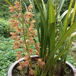 建兰素花,绿白色,清香,一枝开花5至12朵。叶色钢青,细而挺拔,有铮铮铁骨之相,所以叫铁骨素。在日…