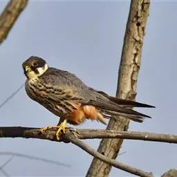 燕隼:是隼科、隼属的鸟类。体长约36厘米,体重140-340克。体形比猎隼、游隼等都小,为小型猛禽,…