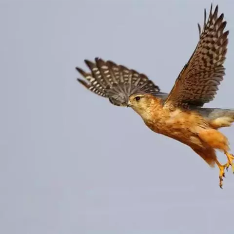 黄爪隼:是隼科、隼属鸟类。体长约305毫米,雄鸟头、颈和翅上覆羽铅灰色;嘴蓝灰色;跗跖和趾淡黄色,…
