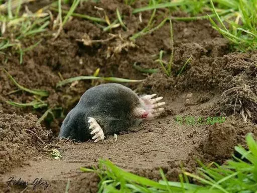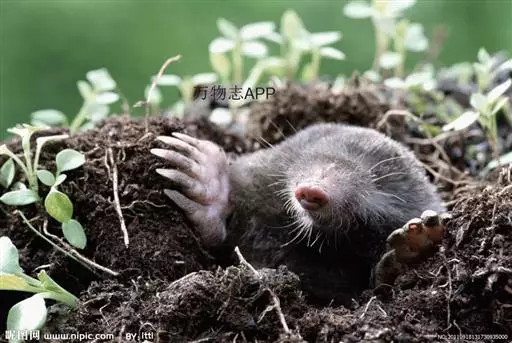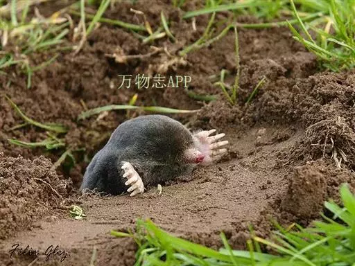 鼹 鼠的拉丁文学名就是“掘土”的意思,这种动物适于地下掘土生活。它的身体完全适应地下的生活方式,前脚大而向外翻,并配备有力的爪子,像两只铲子;身体矮胖,外形像鼠,耳小或完全退化,他的头紧接肩膀,看起来像没有脖子,整个骨架矮而扁,跟掘土机很相似。鼹鼠多栖于海拔1500米以下的山间盆地、河谷地、丘陵缓坡的常绿阔叶林、稀疏灌丛林、农耕地和菜园地附近。营地下洞穴生活,主要以地下昆虫及其幼虫为食。鼹鼠是哺乳类动物,毛黑褐色,嘴尖,眼小,前肢发达,脚掌向外翻,有利爪,适于掘土,后肢细小。白天住在土里,夜晚出来捕食昆虫,也吃农作物的根它的尾小而有力,耳朵没有外廓,身上生有密短柔滑的黑褐色绒毛,毛尖不固定朝某个方向。这些特点都非常适合它在狭长的隧道自由地奔来奔去。隧道四通八达,里面潮湿,很容易孳生蚯蚓、蜗牛等虫类,便于它经常在地下“餐厅”进餐。鼹鼠成年后,眼睛深陷在皮肤下面,视力完全退化,再加上经常不见天日,很不习惯阳光照射,一旦长时间接触阳光,中枢神经就会混乱,各器官失调,以至于死亡。遇到危险时以尖叫震慑敌人,然后伺机逃脱。其声似蝉鸣又似鸟鸣。 鼹鼠(图4) 由于它喜好挖洞,伤害农作物,对农业有害,故为害兽。但这只是从人类的角度来看,从生物链的角度来看,鼹鼠起到了重要的作用。毛棕褐色,细密柔软,并具有光泽,有一定利用价值。