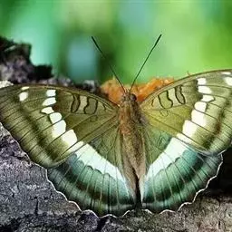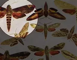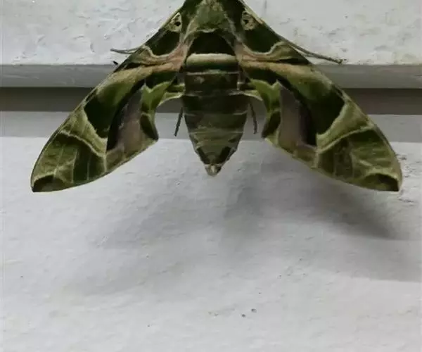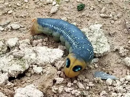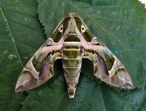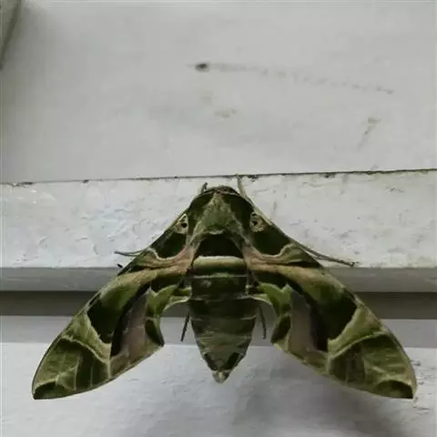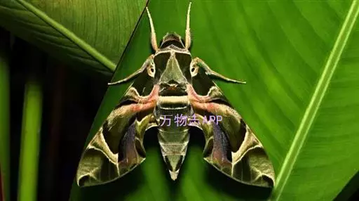 夹竹桃天蛾是身体花纹最漂亮的蛾之一,体表绿色的斑纹使它们看上去就像穿了迷彩装,其名字则因其幼虫主要吃有毒的植物夹竹桃而来。夹竹桃天蛾毛虫身上有醒目的眼状斑点,看起来很像眼睛,其实这只是它们吓唬猎食者的一种退敌方法 。