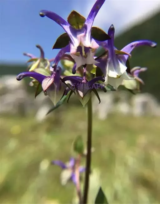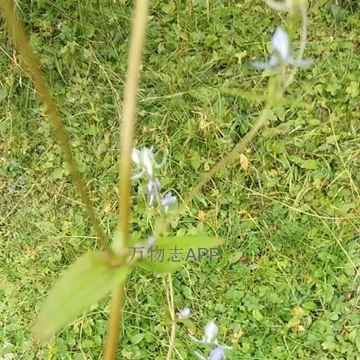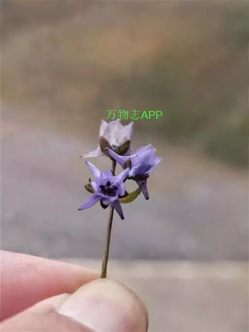 聚伞花序腋生和顶生;花梗长短不相等,长0.5-3.5厘米;花4数,直径1-1.5厘米;花萼裂片椭圆形或卵形,长(3)4-6毫米,宽2-3毫米,先端通常渐尖,常具小尖头,具3脉;花冠蓝色或紫色,花冠筒长约2毫米,裂片卵圆形或椭圆形,长约6毫米,宽4-5毫米,先端具小尖头,距长5-6毫米,向外水平开展;雄蕊内藏,花丝长3-5毫米,花药卵圆形,长约1毫米;子房卵形,长约5毫米,花柱极短,长约1毫米,柱头2裂。