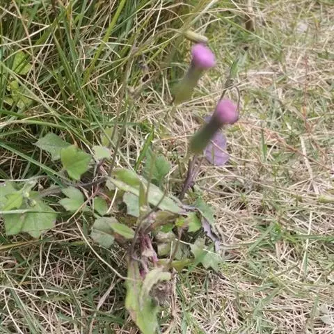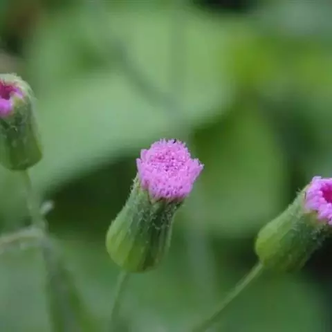 一年生草本,茎直立或斜升,高30-90厘米,无毛或被疏短毛。基部叶小,倒卵形或倒卵状长圆形,顶端钝,基部渐狭成长柄,全缘或具疏齿,中部茎叶长圆形或线状长圆形,长5-9厘米,宽1-3厘米,顶端钝或尖,无柄,抱茎,箭形或具宽耳,边缘具波状齿,上面绿色,下面有时紫色,两面无毛或近无毛,上部叶小线状披针形,头状花序在茎枝端排列成疏伞房状;花序梗细纤,长3-10厘米;总苞圆柱形或狭钟形,长8-12毫米,宽5-10毫米,基部无小苞片;总苞片10,长12毫米,长圆形,宽1-2毫米,短于小花,边缘膜质。背面无毛。小花花冠红色或紫红色,长10毫米,管部细,檐部5齿裂,裂片披针形;花柱分枝顶端增粗。瘦果圆柱形,长约3毫米,具5肋,无毛;冠毛丰富,白色,细软。花果期5-10月。