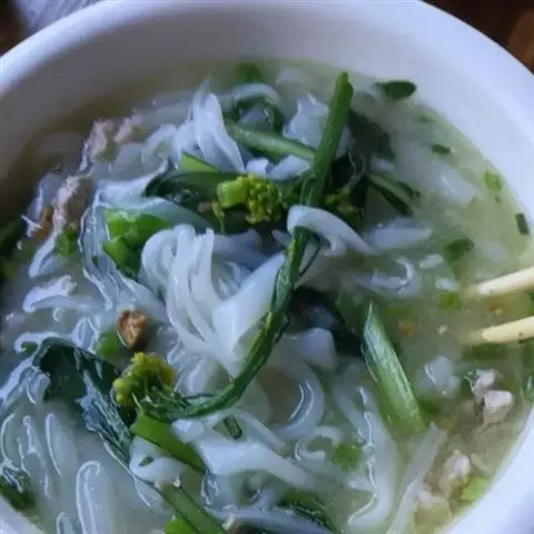 2、把米粉用10℃的水浸两小时,后放入开水锅中煮熟后,捞出放入碗内加入提前备好的汤。