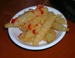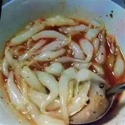 Spices: red pepper 20 grams, sugar 50 grams, 20 grams of vinegar concentrate, orange juice 10 grams, 4 grams of salt, 4 grams of MSG, chicken powder 5 grams, 10 grams of sesame oil, soy sauce, 2 grams.