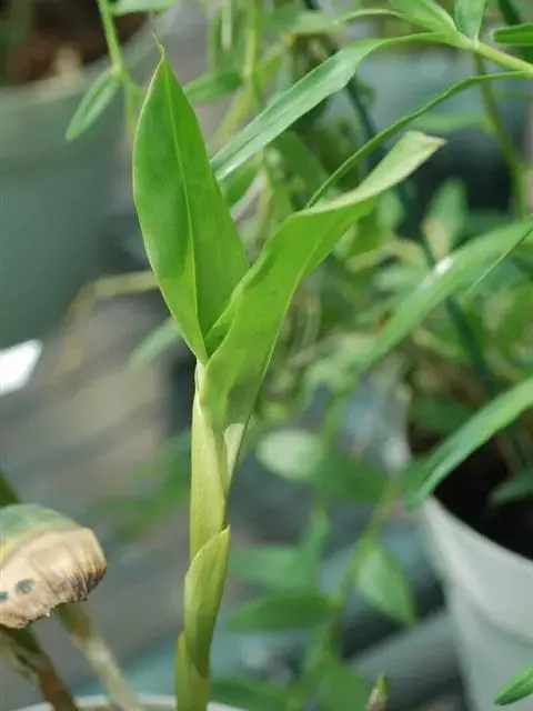 短距槽舌兰 Z. H. Tsi):茎很短,长1-2厘米,具数枚密生的叶。叶肉质或厚革质,二列,斜立…