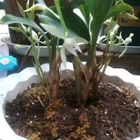 坛花兰:假鳞茎卵状圆柱形,长达15厘米,基部粗1.5-4厘米,具2-4个节,…
