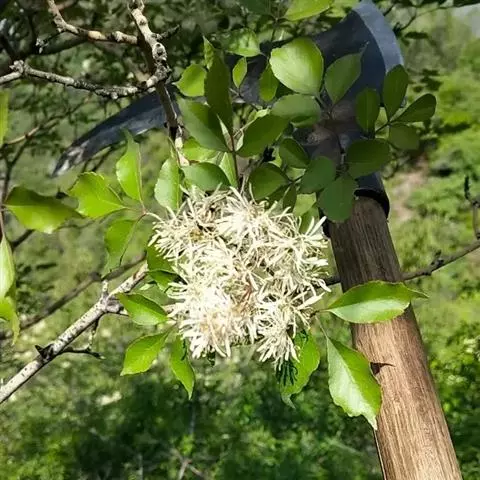 花:圆锥花序生于一年生枝上,长5-20厘米;花密集,雄花与两性花异株,与叶同时开放;花序梗短;花梗纤细,被短柔毛;雄花花萼小,萼齿不规则深裂,花药大,长圆形,花丝短;两性花花萼较宽,萼齿浅裂,花柱细,柱头2裂。