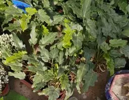 2.盆土缺磷,叶片卷曲,叶色暗绿,下部叶的叶脉间黄化;