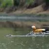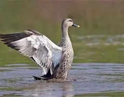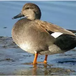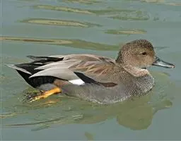 赤膀鸭,是雁形目鸭科鸭属中型游禽。雄鸟嘴黑色,脚橙黄色。头侧及头上部浅白色,满杂以褐色斑点,…