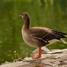 豆雁,雁形目鸭科。成鸟头、颈、背灰褐色,带淡黄色羽缘;尾上覆羽白色,尾羽黑褐色带白端,…