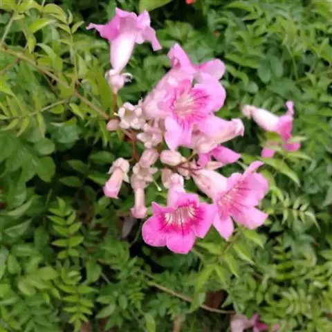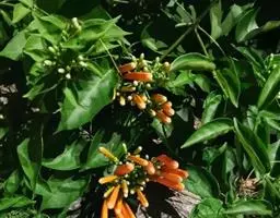 硬骨凌霄 Spach)是紫葳科硬骨凌霄属的多年生常绿木质藤本植物。茎多分枝;枝带绿褐色;叶对生,…