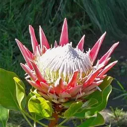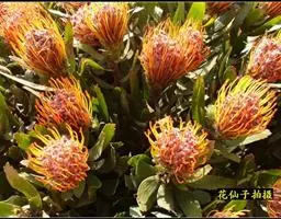 帝王花,山龙眼科帝王花属多年生常绿灌木植;茎干粗壮,叶色翠绿光亮;花朵呈圆球状;其苞片有的完全打开,…