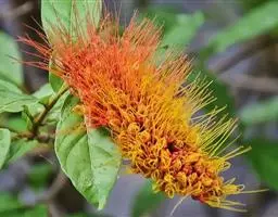 乔木,高10-25米;树皮暗灰色或暗褐色,具浅皱纵裂;嫩枝被锈色绒毛。叶长15-30厘米,二次羽状深裂,裂片7-15对,上面无毛或具稀疏丝状绢毛,下面被褐色绒毛和银灰色绢状毛,边缘背卷;叶柄被绒毛。总状花序,长7-14厘米,腋生,或排成少分枝的顶生圆锥花序,花序梗被绒毛;花梗长1-1.4厘米;花橙色或黄褐色,花被管长约1厘米,顶部卵球形,下弯;花药卵球状,长1.5毫米;花盘半环状,子房具子房柄,花柱顶部圆盘状,稍偏于一侧,柱头锥状。果卵状椭圆形,稍偏斜,长约1.5厘米,径约7毫米,果皮革质,黑色,宿存花柱弯;种子长盘状,边缘具窄薄翅。花期3-5月,果期6-8月。