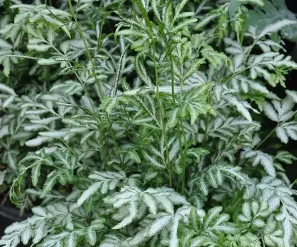 植株高20-40厘米。根状茎短而直立,先端密被鳞片;鳞片披针形,长5-8毫米,黑褐色,有棕色狭边,有光泽,厚膜质,全缘或有微齿牙。叶簇生;叶柄长8-18厘米,粗1.5-2毫米,淡绿色,上面有纵沟,干后压扁,幼时与叶片通体疏被褐色的纤维状小鳞片,以后陆续脱落而渐变光滑;叶片线状披针形,长10-25厘米,宽3-4.5厘米,尾头,二回羽状;羽片20-24对,相距1-1.4厘米,下部(或基部)的对生,向上互生,斜向上,近无柄,彼此密接,下部羽片通常不缩短,几中部的长1.3-2.2厘米,宽0.8-1.2厘米,狭椭圆形,圆头,基部不对称,上侧截形,紧靠叶轴,下侧斜切,羽状;小羽片互生,上先出,上侧有2-5片,下侧0-3 (-4) 片,斜向上,疏离,狭线形,略向上弯,长4-10毫米,宽1-1.5毫米,钝头,基部与羽轴合生并以阔翅相连,全缘,上侧基部1-2片常再二至三裂,基部下侧一片偶为二裂;裂片与小羽片同形而较短。叶脉明显,略隆起,每小羽片或裂片有小脉1条,先端有明显的水囊,不达叶边。叶近肉质,干后草绿色,略显细纵纹;叶轴与叶柄同色,顶端往往延长成鞭状而生根,羽轴与叶片同色,上面隆起,两侧有狭翅。孢子囊群狭线形,长2.5-5毫米,深棕色,每小羽片或裂片1枚,位于小羽片的中部上侧边;囊群盖狭线形,灰绿色,膜质,全缘,开向叶边,宿存。染色体2n=144。