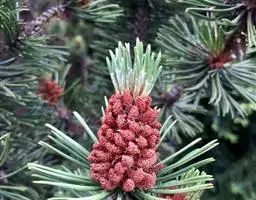 银杉(学名:Cathaya argyrophylla Chun et Kuang):树皮暗灰色。大枝平展,小枝节间的上端较粗,或少数侧生小成距状。叶枕近条形,稍隆起,顶端具近圆形、圆形或近四方状的叶痕,其色较淡。叶条形,多少镰状弯曲或直,先端圆,基部渐窄成不明显的叶柄,上面深绿色,被疏柔毛,沿凹陷的中脉有较密的褐色短毛。雄球花开放前长椭圆状卵圆形,盛开时穗状圆柱形,近于无柄,基部围绕的苞片半透明膜质,背面凸起,边缘具不规则的锯齿,雄蕊黄色,雌球花基部无苞片,卵圆形或长椭圆状卵圆形,珠鳞近圆形或肾状扁圆形,黄绿色,苞鳞黄褐色,三角状扁圆形或三角状卵形,先端具尾状长尖,边缘波状有不规则的细锯齿。