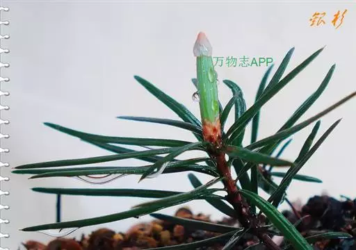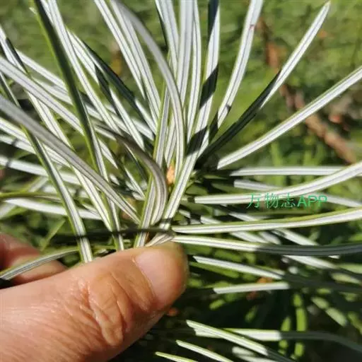 银杉的果实 银杉,裸子植物,松科,是一种高十至二十几米的常绿乔木。胸径40厘米以上。树皮暗灰色,老时则裂成不规则的薄片。大枝平展,小枝节间的上端生长缓慢、较粗,或少数侧生小枝因顶芽死亡而成距状。 一年生枝黄褐色,密被灰黄色短柔毛,逐渐脱落。二年生枝呈深黄色。叶枕近条形,稍隆起,顶端具近圆形、圆形或近四方状的叶痕,其色较淡。冬芽卵圆形或圆锥状卵圆形,顶端钝,淡黄褐色,无毛,通常长6-8毫米。叶螺旋状着生成辐射伸展,在枝节间的上端排列紧密,成簇生状,在其之下侧疏散生长,多数长4-6厘米,宽2.5-3毫米,边缘微反卷,在横切面上其两端为圆形,下面沿中脉两侧具极显著的粉白色气孔带,每条气孔带有11-17行气孔,气孔带一般较浅绿色的叶缘边带为宽。侧生小枝的节间较短,叶排列较密,上端之叶密集、近轮状簇生,多数长不超过3厘米,边缘平或近平,在横切面上其两端斜尖,下面粉白色气孔带有9-13行气孔,宽与边带近相等。叶条形,多少镰状弯曲或直,先端圆,基部渐窄成不明显的叶柄,上面深绿色,被疏柔毛,沿凹陷的中脉有较密的褐色短毛。幼叶上面的毛较多,沿叶缘具睫毛,睫毛不久即脱落,仅留痕迹。