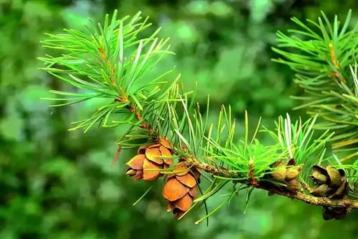 球果成熟前绿色,熟时由栗色变暗褐色,卵圆形、长卵圆形或长椭圆形,长3-5厘米,径1.5-3厘米,种鳞13-16枚,近圆形或带扁圆形至卵状圆形,长1.5-2.5厘米,宽1-2.5厘米,背面(尤其是被覆盖着的部分)密被微透明的短柔毛;苞鳞长达种鳞的1/4-1/3;种子略扁,斜倒卵圆形,基部尖,长5-6毫米,径3-4毫米,橄榄绿带墨绿色,有不规则的浅色斑纹,种翅膜质,黄褐色,呈不对称的长椭圆形或椭圆状倒卵形,长10-15毫米,宽4-6毫米。