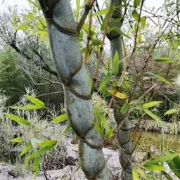 人面竹(学名:Phyllostachys aurea Carr. ex A. et C. Riv.)是禾本科刚竹属植物。竿劲直,高5-12米,粗2-5厘米;中部节间长15-30厘米,基部或有时中部的数节间极缩短;箨环幼时生一圈白色易落的短毛。箨鞘背面黄绿色或淡褐黄带红色;箨舌很短,淡黄绿色;箨片狭三角形至带状,开展或外翻而下垂。末级小枝有2或3叶;叶鞘无毛;叶耳及鞘口繸毛早落或无;叶舌极短。小穗含1-4朵小花,上部者不孕。颖果线状披针形,长10-14毫米,直径1.5-2毫米,顶端宿存花柱的基部。笋期5月中旬。