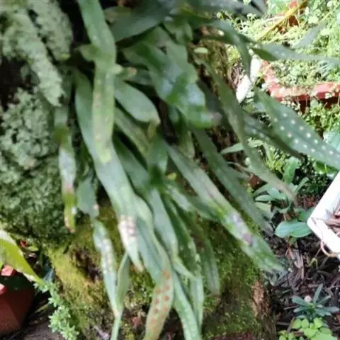 石韦 Farw.).水龙骨科、石韦属中型附生蕨类植物,植株可达30厘米。横走根状茎,鳞片披针形,…