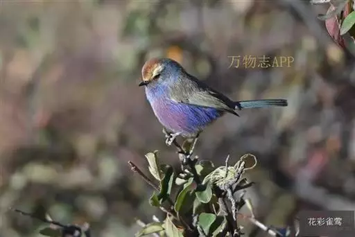 花彩雀莺:体长9-12厘米,是一种毛茸茸偏紫色的雀莺。顶冠棕色,眉纹白。尾长,羽毛松软。…