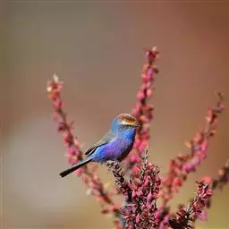 凤头雀莺:小型鸟类。体长9-10厘米,雄鸟呈毛茸茸的紫色和绛紫色,顶冠淡紫灰色,额及凤头白色,尾全蓝。…