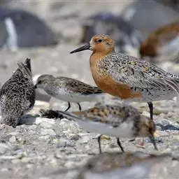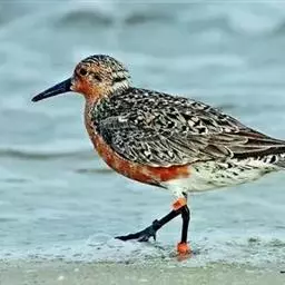红腹滨鹬,是鹬科、滨鹬属的小型涉禽,体长23-25厘米,嘴较短而直、黑色,脚亦甚短、绿色。体较粗胖。…