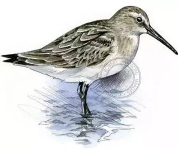 弯嘴滨鹬(学名:Calidris ferruginea)是丘鹬科滨鹬属鸟类动物,小型涉禽,体长19-23厘米。嘴较细长,明显的向下弯曲。夏羽头和下体栗色,上体黑色,具暗栗色和白色羽缘。飞翔时从上看白色腰和翼带极为醒目,从下看, 翼下和尾下白色,其余下体红色,反差亦甚强烈。冬羽上体灰褐色,下体白色,颈侧和胸缀有黄褐色,眉纹白色,飞翔时白色翅带和腰亦甚明显。